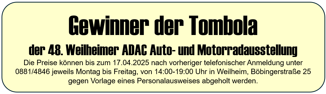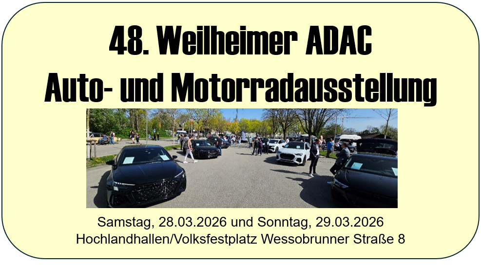 | Sa/So | 03./04.04. | 49. Weilheimer ADAC Auto- und Motorradausstellung |